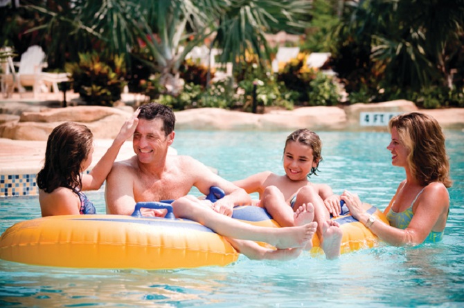 Aqueles que ficam seis ou mais noites nos hotéis participantes de Osceola County terão direito a uma mala de viagem. Casas para se hospedar / Créditos: Divulgação Familia no parque aquático do Reunion Resort  / Créditos: Divulgação Jacaré da Gatorland  / Créditos: Divulgação Premium Outlets  / Créditos: Divulgação Reunion Resort  / Créditos: Divulgação