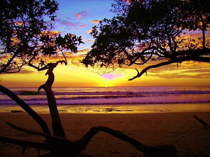 Avellanas é uma extensa praia de areia branca. É bem “roots” e muy bonita, muy tranquila! É também considerada um dos melhores locais para surfar na Costa Rica. Little hawaii, localizado ao norte da praia, na boca do rio, é o ponto favorito dos surfistas locais e dos mais experientes. Para quem não surfa, como é o meu caso, a praia é perfeita para tomar sol, fazer caminhadas ou simplesmente contemplar. Lá, admirei o pôr-do-sol mais bonito que eu já vi, foi inesquecível!