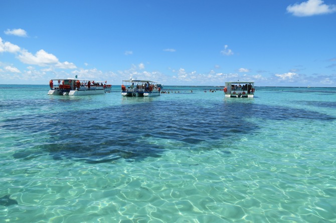 Outro entre os melhores passeios que fizemos foi Maragogi, a aproximadamente 125 Km ao norte de Maceió. Apesar de ficar um pouco mais distante, vale muito a pena conhecer. Lá encontram-se as maiores piscinas naturais, que são formadas a 6 km da costa por recifes de corais, onde vivemos uma experiência inesquecível: nosso primeiro mergulho de cilindro! Seguimos de catamarã até as piscinas e durante o caminho recebemos orientações gerais sobre o mergulho, que poderia ser com snorkel (flutuando, sem imergir) ou com cilindro, acompanhado por um mergulhador-guia.