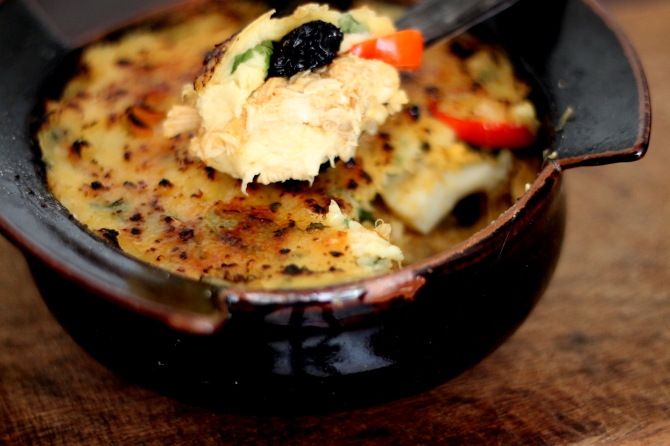 E entre esses pratos eu provei o pastel de choclos. Bem diferente do nosso pastel de feira, ele lembra bem mais uma torta ou um escondidinho: massa cremosa e recheada. Chega até a lembrar também a nossa goiana chica doida, que também tem na base um creme de milho fresco, mas com um toque adocicado graças ao açúcar brulée que cobre tudo e as passas no recheio.