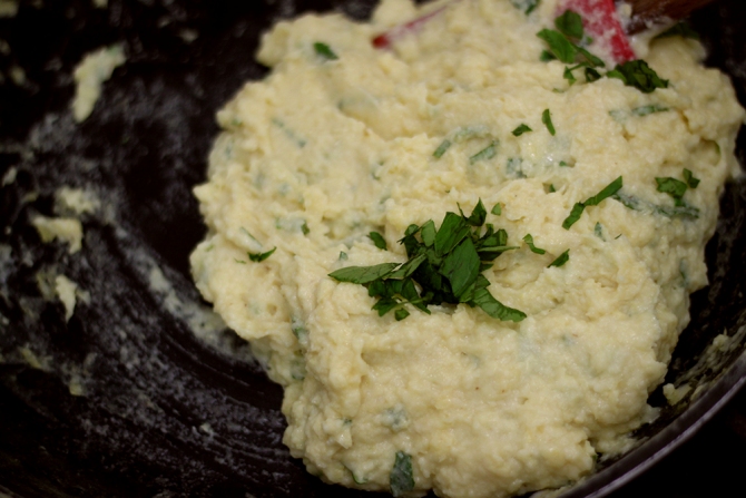Em uma panela quente com manteiga derretida cozinhe a papa com um pouco de sal até que engrosse bem.