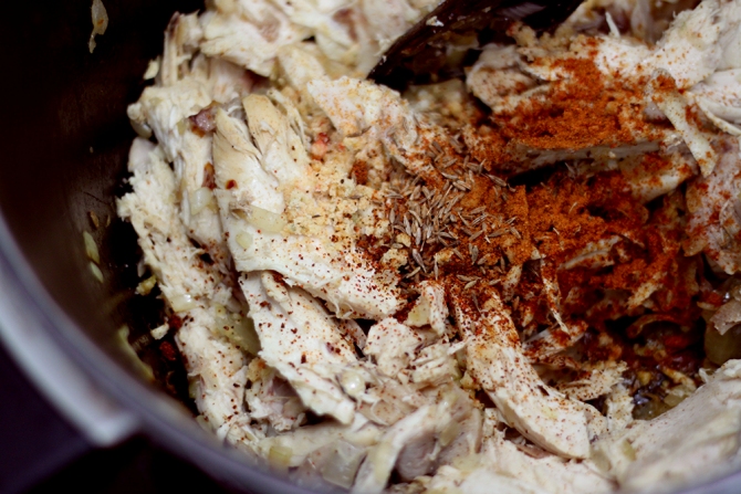 Coloquei o frango, cominho e páprica.