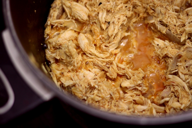 Na tradição peruana o recheio mais comum é frango assado e desfiado, azeitonas, ovos cozidos e uvas passas. Aqui do lado Atlântico eu usei uma sobra de frango caipira desfiado. Não coloquei azeitona porque o maridón detesta, mantive as passas e acrescentei mini pimentões levemente adocicados.