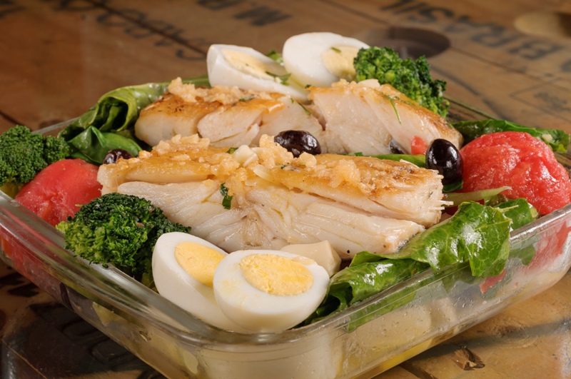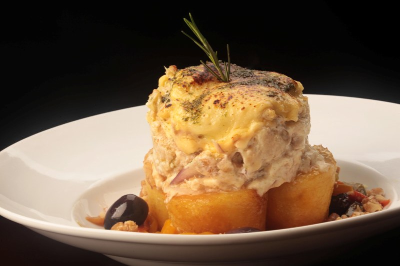Bacalhau à Tilim – bacalhau com batatas, brócolis, pimentão, azeitona e ovos cozidos. Porção para duas pessoas – R$79,80.