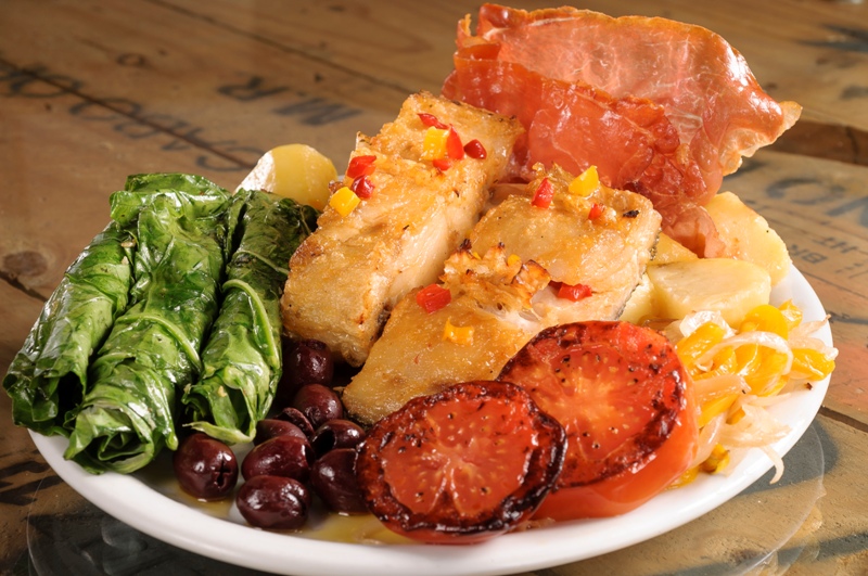 Empório Gourmet Restaurante: Bacalhau Ibérico – lombos do bacalhau Morhua assados, acompanhados de couve portuguesa puxadas no alho, tomates assados, batatas cozidas, pimentão amarelo com cebola à Juliene, finalizado com frito de parma e azeitonas. Porção para duas pessoas: R$138,90