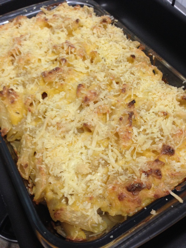 Depois cubra o refratário com queijo parmesão ralado e leve ao forno por 30 minutos com temperatura de 230º. Depois é só tirar e servir seu Mac and Cheese.