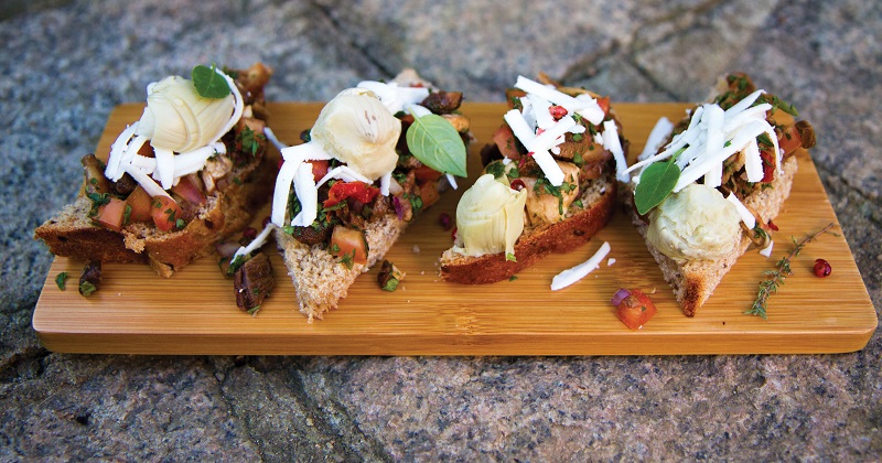 Bruschetta de cogumelos e alcachofra – do chef Reinhard Pfeiffer, autor do livro Brasilidades.