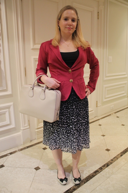 Se preferir usar saia, passe longe dos modelos “a la Geisy Arruda”, a famosa roupa de periguete. Prefira uma saia mais comprida, de um tecido que não amasse e que seja confortável. Eu simplesmente adoro esta da foto porque fico super à vontade com ela. E não preciso ficar me preocupando com o modo como estou sentada.