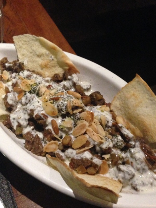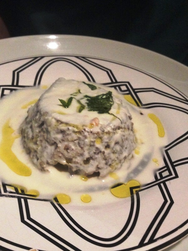 De entrada optamos pelo Homus libanesa – homus temperado com fatias de linguiça árabe e castanhas de caju e o Trigo frique – mix de trigo grosso, peito de frango desfiado e carne moída. servido com o frescor da coalhada fresca e da hortelã.