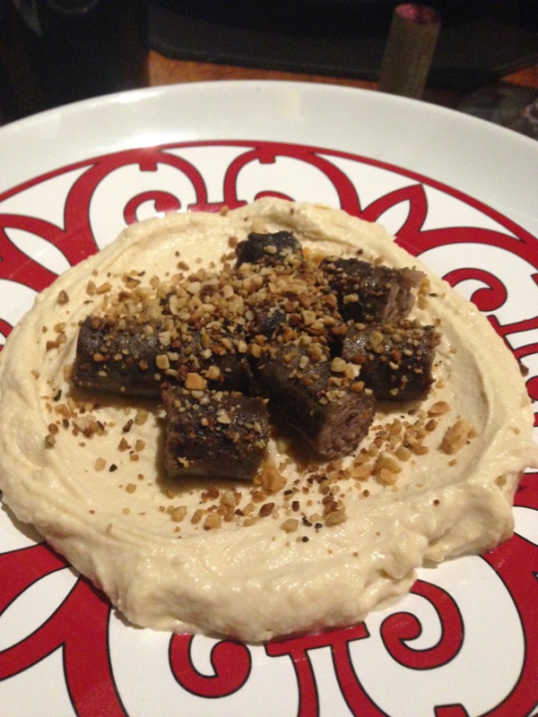 O homus libanesa veio do jeito que esperávamos bem temperado com a quantidade de tahine bem suave e, a linguiça árabe com as castanhas de caju, sem dúvida deram todo destaque para o prato.