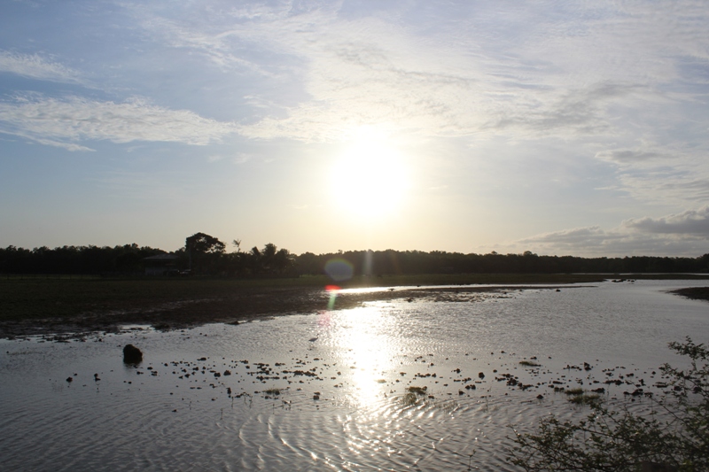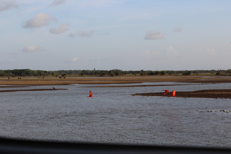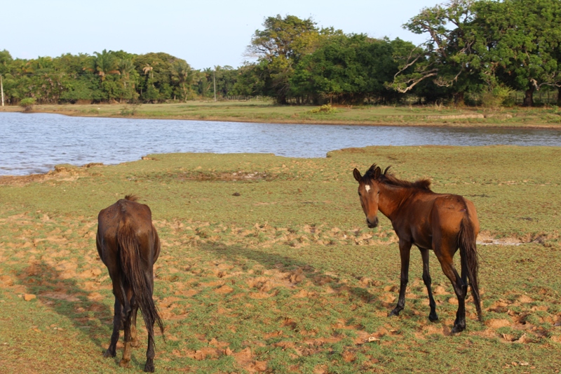 Búfalos e cavalos também estão pelo caminho. Em época de cheia a terra fica cheio de lama e água e é possível ver os búfalos submersos nos locais.  Se tiver sorte é possível ainda ver jacarés dentro do mangue.