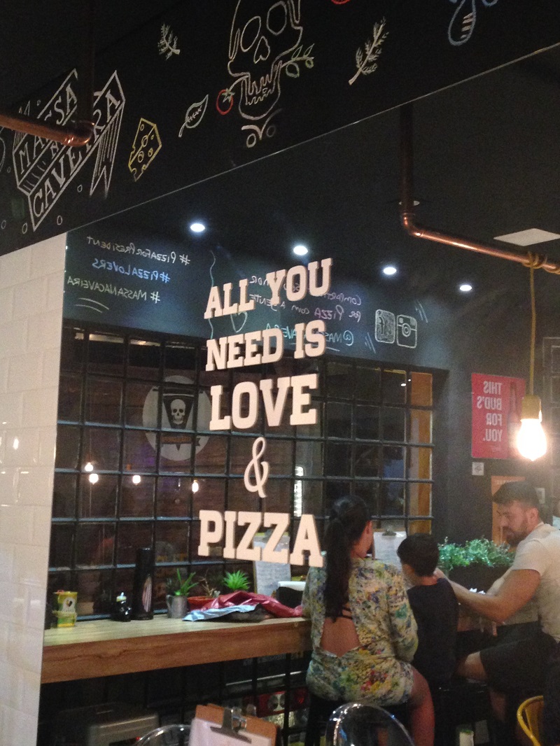 Diferente das pizzas que mais gostamos — aquelas com borda média ou grossa bem estilo italiana que após dois pedaços já estamos satisfeitos — a Massa na Caveira serve pizza para inovar nos sabores e isso faz toda a diferença. Para acompanhar? Uma deliciosa cerveja artesanal a um preço justo de R$20… Agrega sabor e companhia e termos a oportunidade de provar e inovar. Sempre!