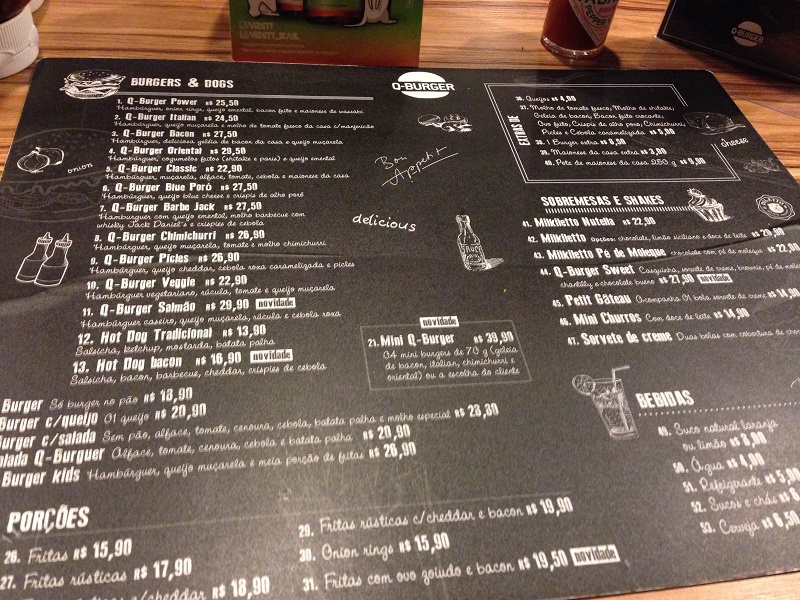 Não há nada de complicado no Q-Burger, basta escolher os burgers com preços ótimos e opções saborosíssimas, acompanhamentos, shakes e sobremesas. Os preços variam entre R$22,90 a R$29,90 cada hambúrguer. Preço relativamente bom se formos comparar com casas do mesmo porte.