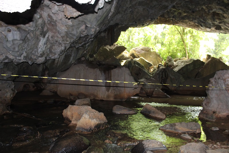 Lá dentro é possível caminhar cerca de 200 metros entre um pequeno riozinho que passa la dentro e seus declives.