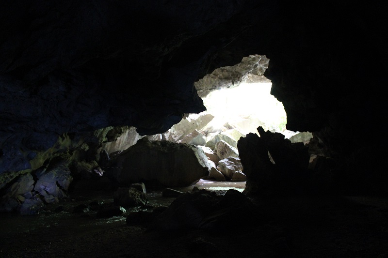 É possível observar com calma e deslumbramento rochas as rochas ígneas e metamórficas que compõe a gruta que tem duas entradas imensas de luz. Vimos até uma família de morcegos em uma das áreas de rochas.