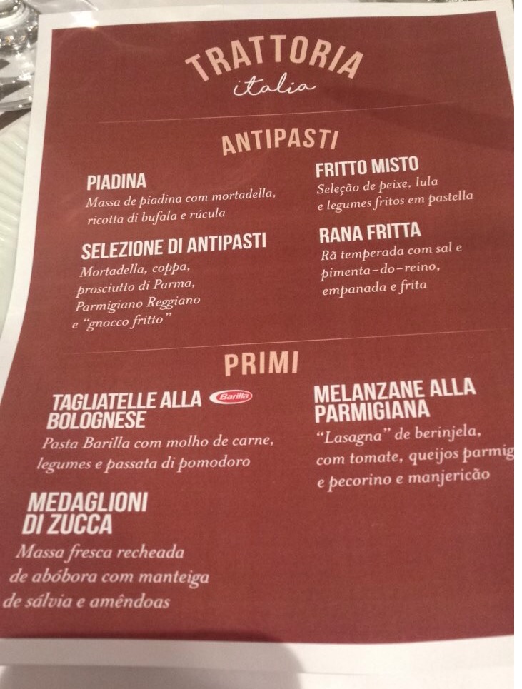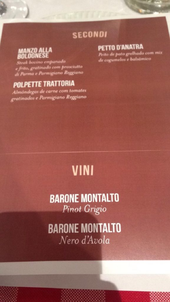 Degustamos cada um dos pratos e elegemos nossos preferidos que foram o Selezione Di AntiPasti, Tagriatelle alla Bolognese e o Medaglioni di Zucca.