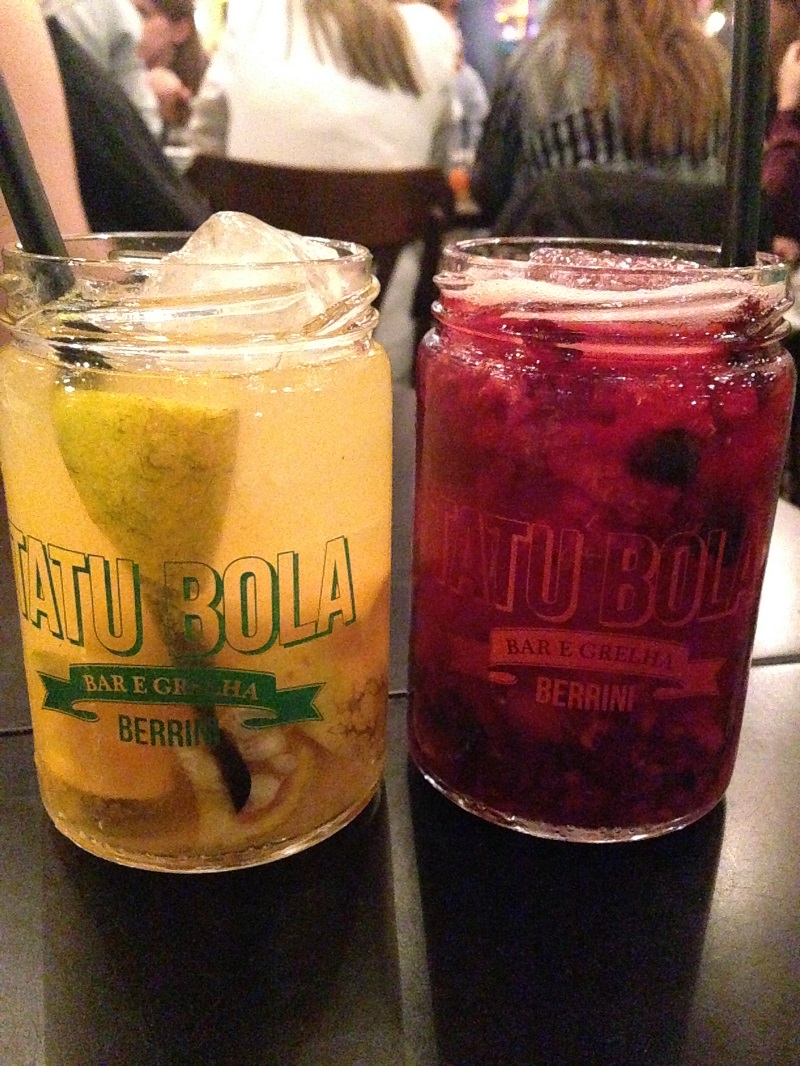 A grande “marca” que são as caipirinhas servidas em potes com o logo do Tatu Bola Bar estampado. Caipirinhas de diversos tipos, coloridas nos potes e que deixam tudo mais fofo e agradável. Drinks e cervejas também ganham espaço no menu da casa.