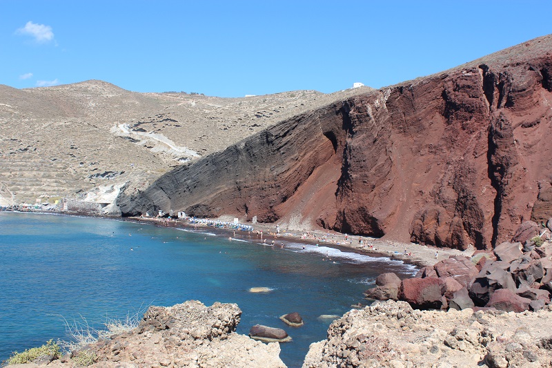 As principais praias ficam no Sul da ilha e é necessário estar de carro para ter acesso. Conhecemos a Red Beach e a Vlichada Beach e são excelentes para banho. A Red Beach é a mais famosa por conta da “areia vulcânica”.