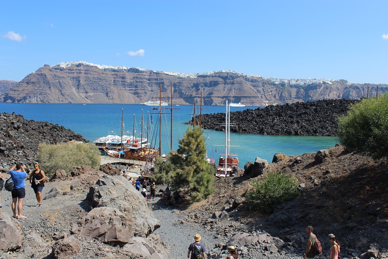 Em Fira e Óia há diversas agências que fecham alguns passeios e, o passeio no vulcão da ilha é um dos mais interessantes oferecidos. Custa 20 euros por pessoa.