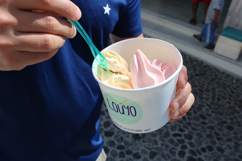 O iogurte grego tem em todos os vilarejos e em todos os hotéis tem como opção no café da manhã. Vale experimentar um iogurte grego frozen em diversas lojinhas pela cidade. Com o calor que costuma fazer entre junho e outubro, vale a pena!
