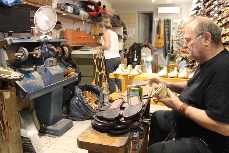 Em várias lojas é possível comprar as sandálias legítimas e no estilo grego, mas nos encantamos com uma loja próxima a Cable Car em Thira (Fira) que todas as sandálias de couro são feitas a mão por um senhor muito simpático. Se quiser levar algo único e artesanal, a sandália é uma boa pedida de presente.