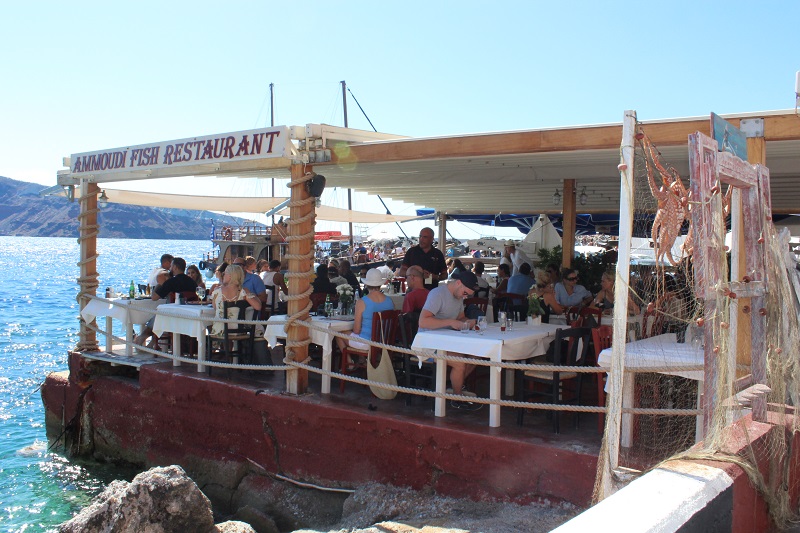 A baía de Amoudi, um pequeno porto à beira mar é o local dos pescadores locais da ilha. Ali você vê polvos secando ao sol e pode almoçar em Tavernas que servem frutos do mar e peixes realmente frescos.