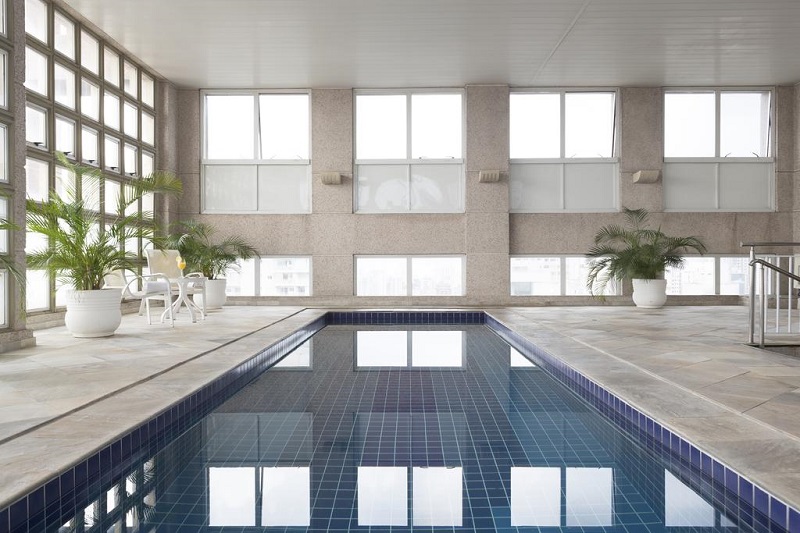 A piscina fica na cobertura, de onde é possível ver o centro da cidade. Tem academia, estacionamento, Wi-Fi gratuito e fácil acesso, já que está a um quarteirão da Avenida Paulista e da estação de metrô Brigadeiro. A reserva de 6h sai por R$ 126,00.