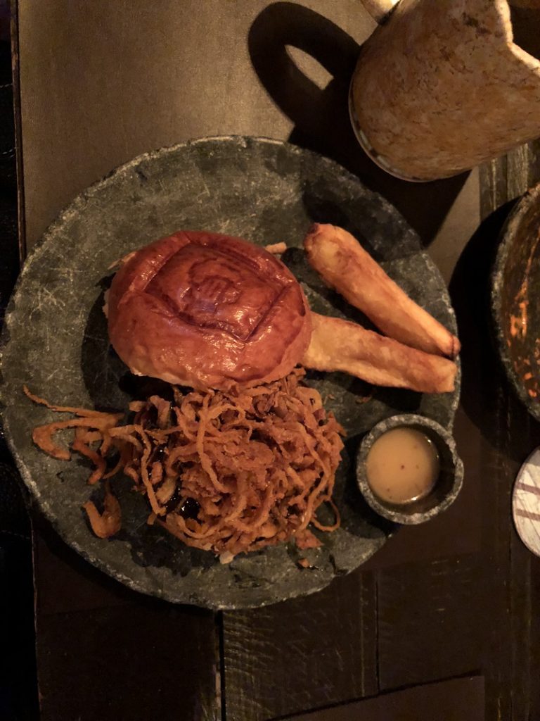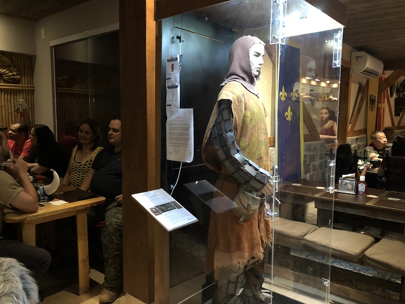 Assim que chegamos já entramos no clima da casa, na espera fica um casal a caráter dançando uma musiquinha medieval. Bem estilo Senhor dos Anéis ou Game of Thrones. Todos os garçons estão caracterizados com roupas da época e tratam o cliente como “Milorde” e “Milady”.