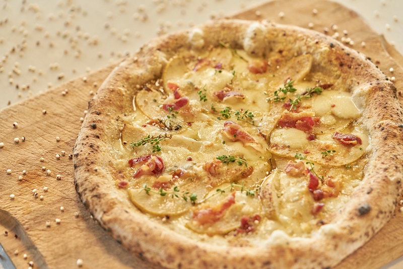 Com absoluta certeza a Gorgonzola com Pera e Bacon. A pizza é de mozzarella “La Bufalina”, gorgonzola, pera, bacon crocante e azeite extravirgem. Simples e com uma combinação agridoce deliciosa.