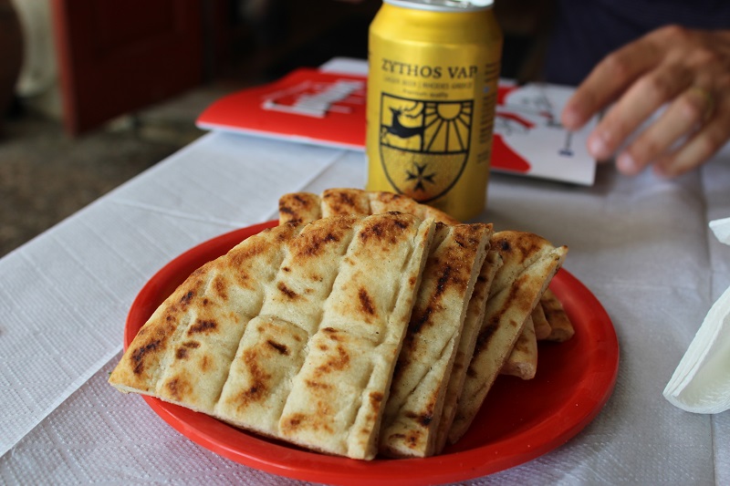 Logo que passamos na frente do restaurante já fomos puxados no melhor estilo Grego por um dos atendentes que nos avisou que a cerveja estava por pouco mais 1 euro. Como tinha Gyros e estávamos muito interessados em comer em Atenas, resolvemos almoçar por lá.