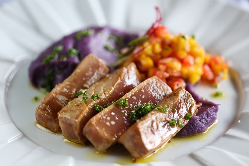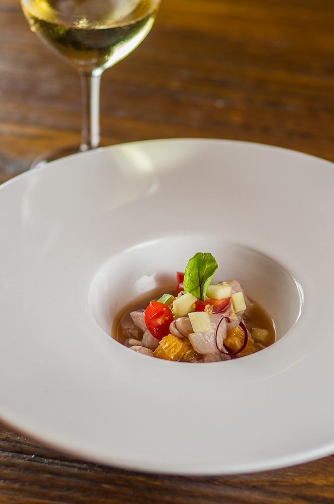 – Peixe crudo do dia com maçã frita em pastela e balsâmico