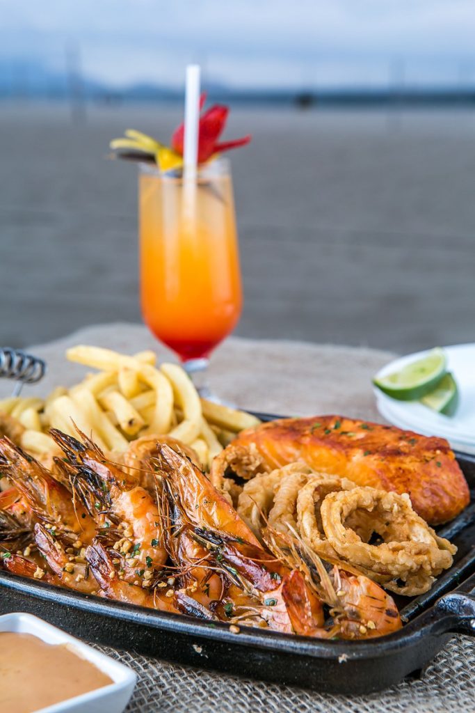 – Peixe do dia em crosta de pistache, arroz negro e legumes verdes