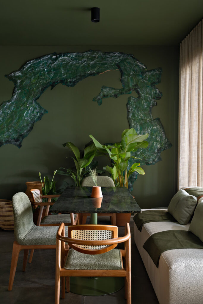 Outro diferencial está na proposta de experiência completa: mais do que um restaurante, o espaço convida à permanência. O mobiliário da Breton, distribuído entre os diferentes ambientes, reforça esse convite — com sofás, poltronas e mesas que estimulam refeições mais longas, encontros e momentos sem pressa.